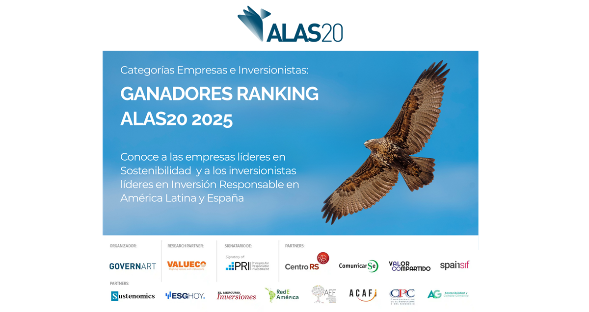 La Agenda de Líderes Sustentables es una iniciativa pionera en América Latina y España que desde 2014 evalúa, califica y reconoce integralmente la excelencia en la divulgación pública de información sobre prácticas de desarrollo sostenible, relaciones con inversionistas e inversiones responsables de empresas e inversionistas. Actualmente, en ALAS20 participan organizaciones de Brasil, Chile, Colombia, España, México y Perú.